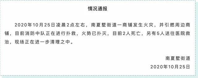 10月25日淩晨兩點左右,在江蘇常州南夏墅街道,有一家商鋪發生了火災,然後該商鋪的大火引燃了周邊的商鋪,而根據南夏墅街道發布的通報得知,目前已經有2人因為火災死亡,另外有5人受傷送到醫院進行搶救。
