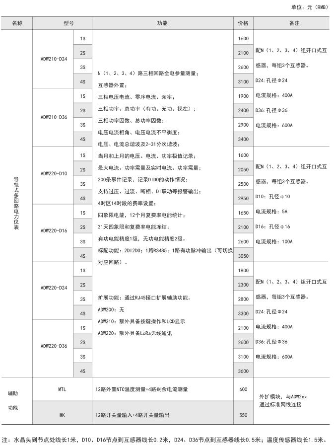 ADW2xx係列導軌式多回路電力儀表主要用於低壓三相回路全電參量測量,同時可選擇四個回路的電流輸入。可直接或間接測量電壓、電流、功率、功率因數、相角、不平衡度、諧波等參數。 還可通過其RJ45接口擴展輔助功能,實現DI、DO、測溫、剩餘電流測量,以及2G、4G、LoRa、LoRaWan、NB-Lot無線通信功能。