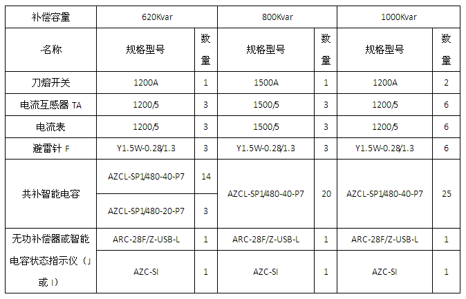 1、變壓器容量為400/800/1000/1250/1600/2000KVA的三相補償應用方案(串接7%電抗器)。